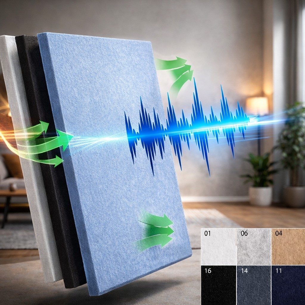 Grâce à sa composition en PET haute densité, le panneau présente une excellente résistance aux impacts. Il peut être utilisé comme solution d’isolant sonore dans les salons, chambres, bureaux, salles à manger, salles polyvalentes ou espaces professionnels.