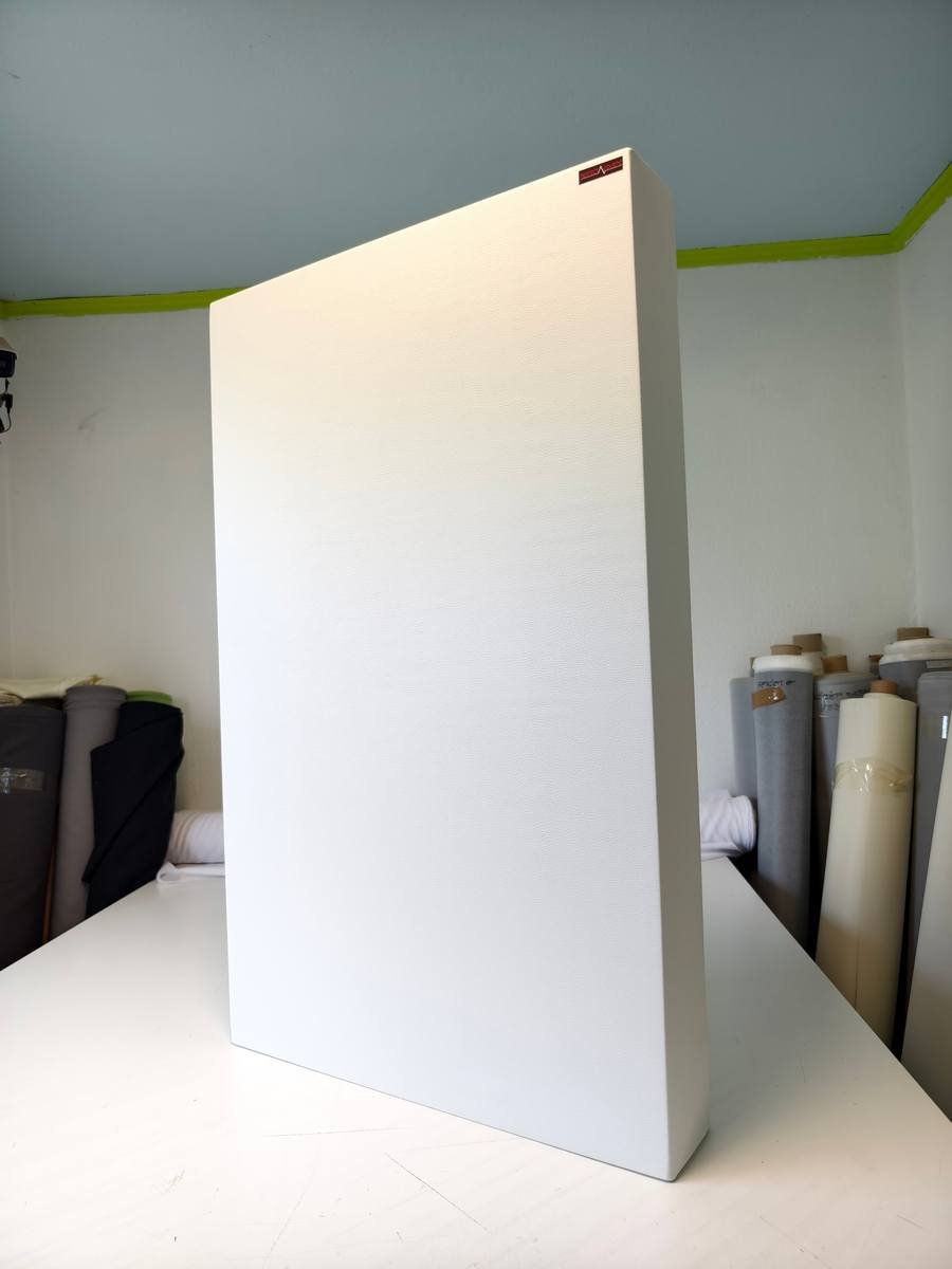 - Chaque panneau de membrane en bois est recouvert d’une soie acoustique dense. Cela lui donne exactement la même apparence que les panneaux à large bande.