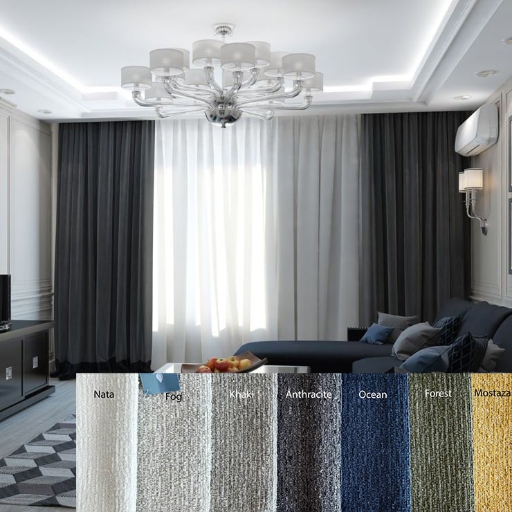 1. Chaque rideau double est fabriqué sur mesure, donc chaque rideau insonorisant est unique, c’est pourquoi nous ne sommes pas en mesure de les reprendre ! 2. Le poids des rideaux se réfère mètre linéaire du tissu : 1 mètre linéaire mesure 140 cm et pèse 820 gr (+/- 20-30% d’écart de poids possible!). 3. Les rideaux acoustiques peuvent absorber jusqu’à 8 à 15 décibels, selon la taille de la pièce et ses conditions acoustiques. Ces 2 facteurs étant déterminants pour garantir l’efficacité du rideau, nous n’acceptons pas de réclamations et nous ne sommes pas en mesure de reprendre les produits ! Les commandes sur mesure ne peuvent être ni modifiées ni annulées après paiement. N’hésitez pas á nous contacter pour plus d’informations. Lisez attentivement les conditions de vente. Il peut y avoir une légère variation de couleur entre les rideaux et les housses de coussin commandés, même s’il s’agit du même code de couleur. L’échantillon de couleur commandé peut varier légèrement de la couleur commandée. La couleur d’une nouvelle commande peut être différente de celle de la commande précédente. Les produits peuvent être fabriqués avec une variation de +-1-2%.